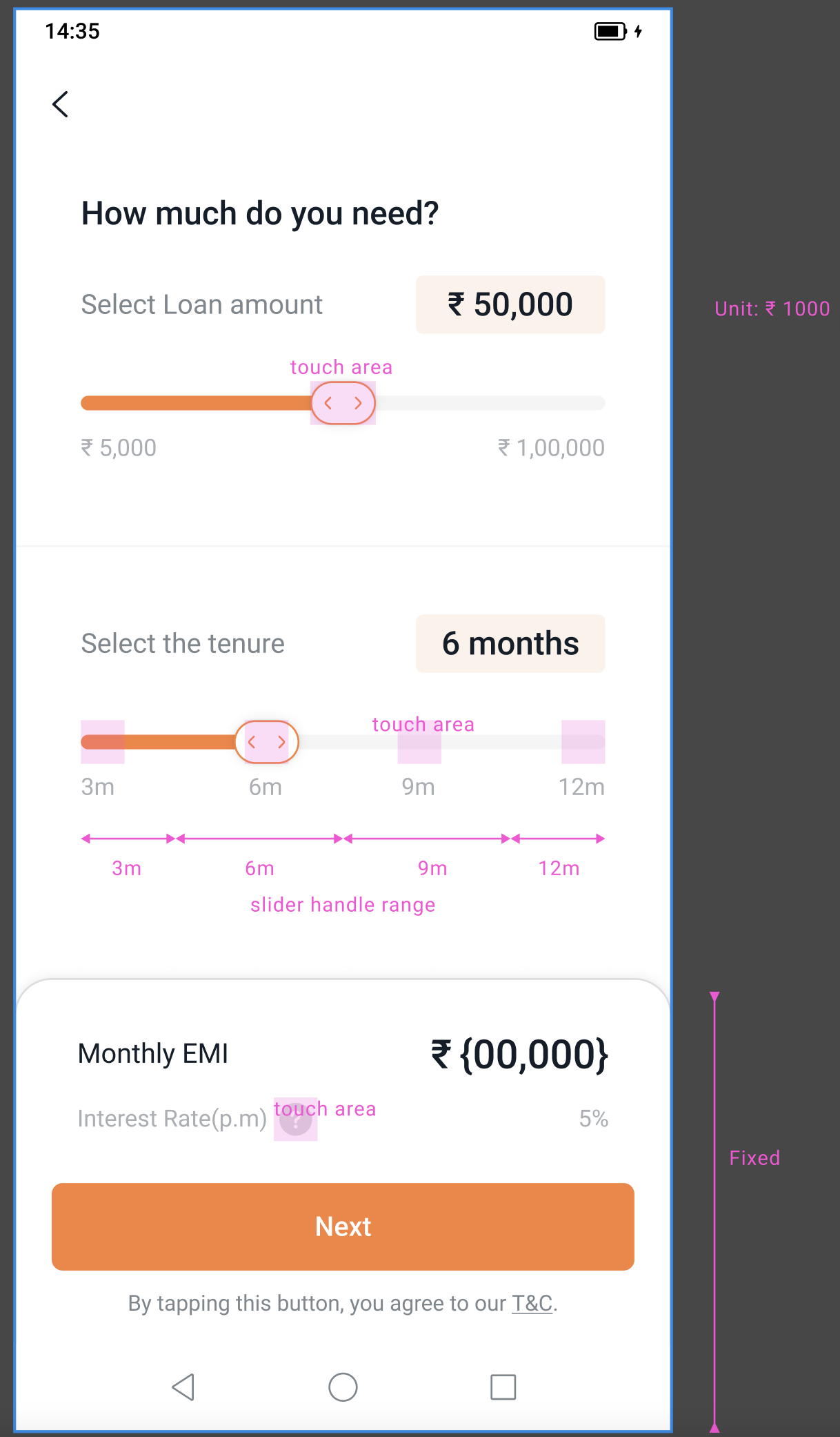 2. Progress에 해당하는 부분을 터치하면 Thumb가 해당부분까지 부드럽게 애니메이션 되어서 갈것