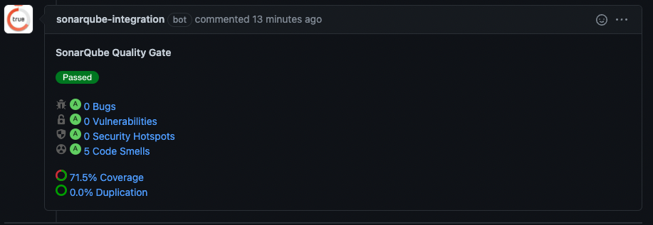 Pull Request 에 Sonar 를 붙여서 새로운 코드의 Test Coverage가 60%가 넘지않으면 fail이 뜨도록 하는 Sonar 설정을 깃헙에 붙여서 쓰고있었다.
