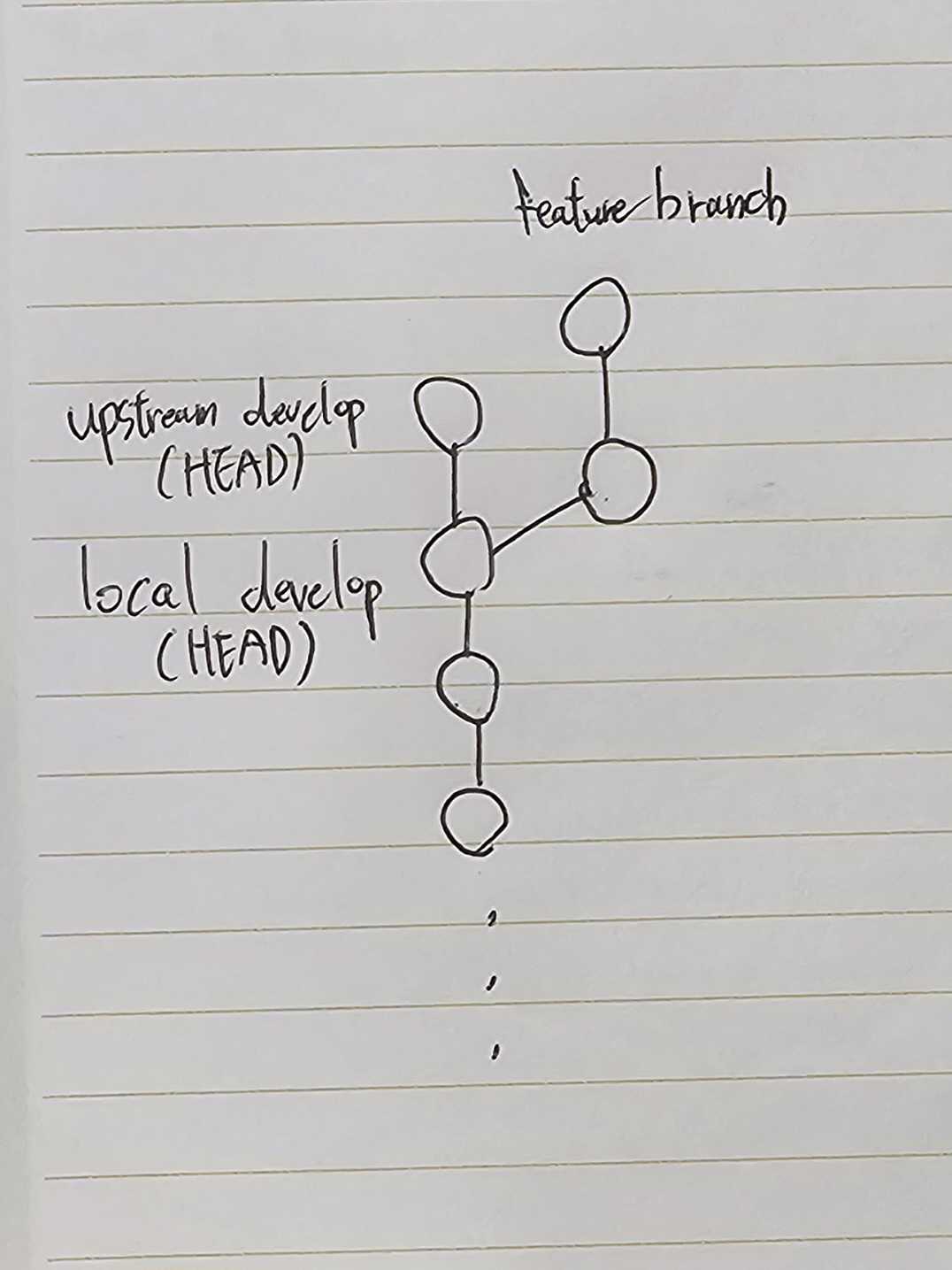 그래서 upstream develop에 rebase를 하고 테스트코드를 수정해서 Pull Request를 돌렸으면 문제가 없을 내용인데, 그 commit 하나에 대해 리베이스 하지 않는게 문제였다.