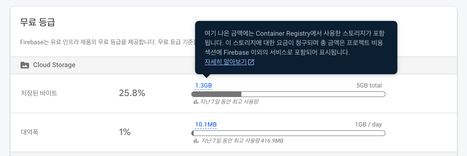 좀 들여다보니 한가지 힌트를 볼 수 있었는데, 그것은 바로 Container Registry에 사용한 스토리지가 포함된다는 것이다.